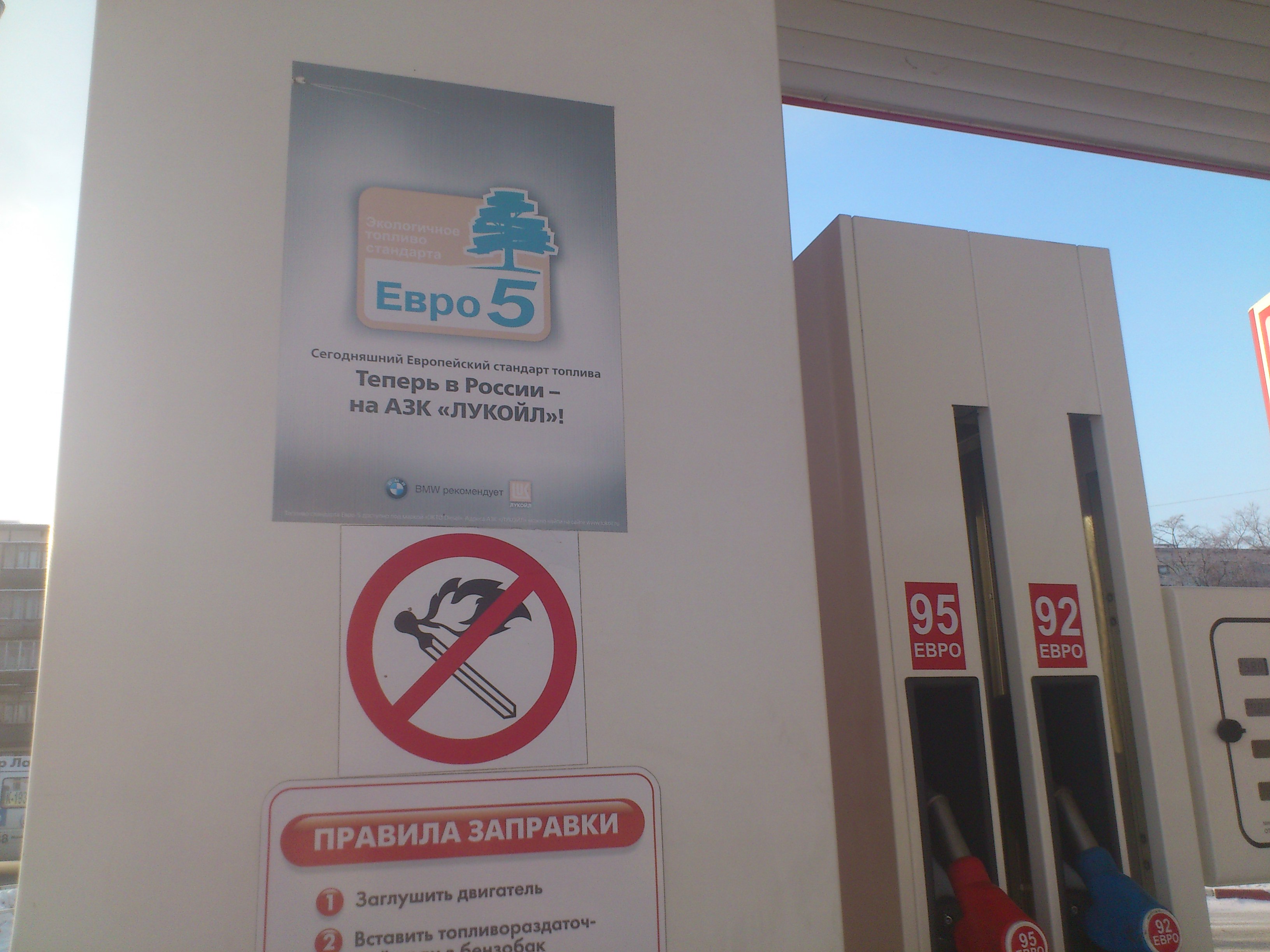 Как оказалось, там топливо Евро-4 (дизель - Евро-5). Но на колонке плакат висит. Оператор сказал, что это в рекламных целях. Значит вводят народ в заблуждение. Но 95-й там все-равно хороший.