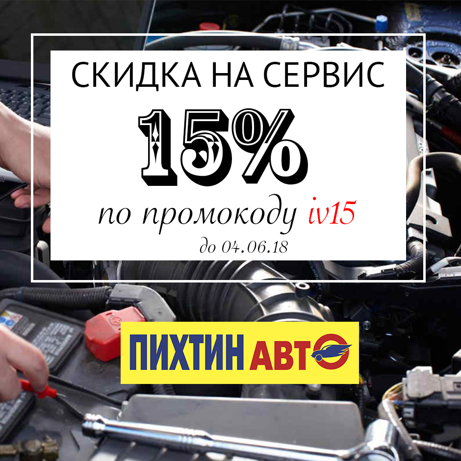Скидка распространяется на ремонт и обслуживание автомобилей в ПихтинАвто!