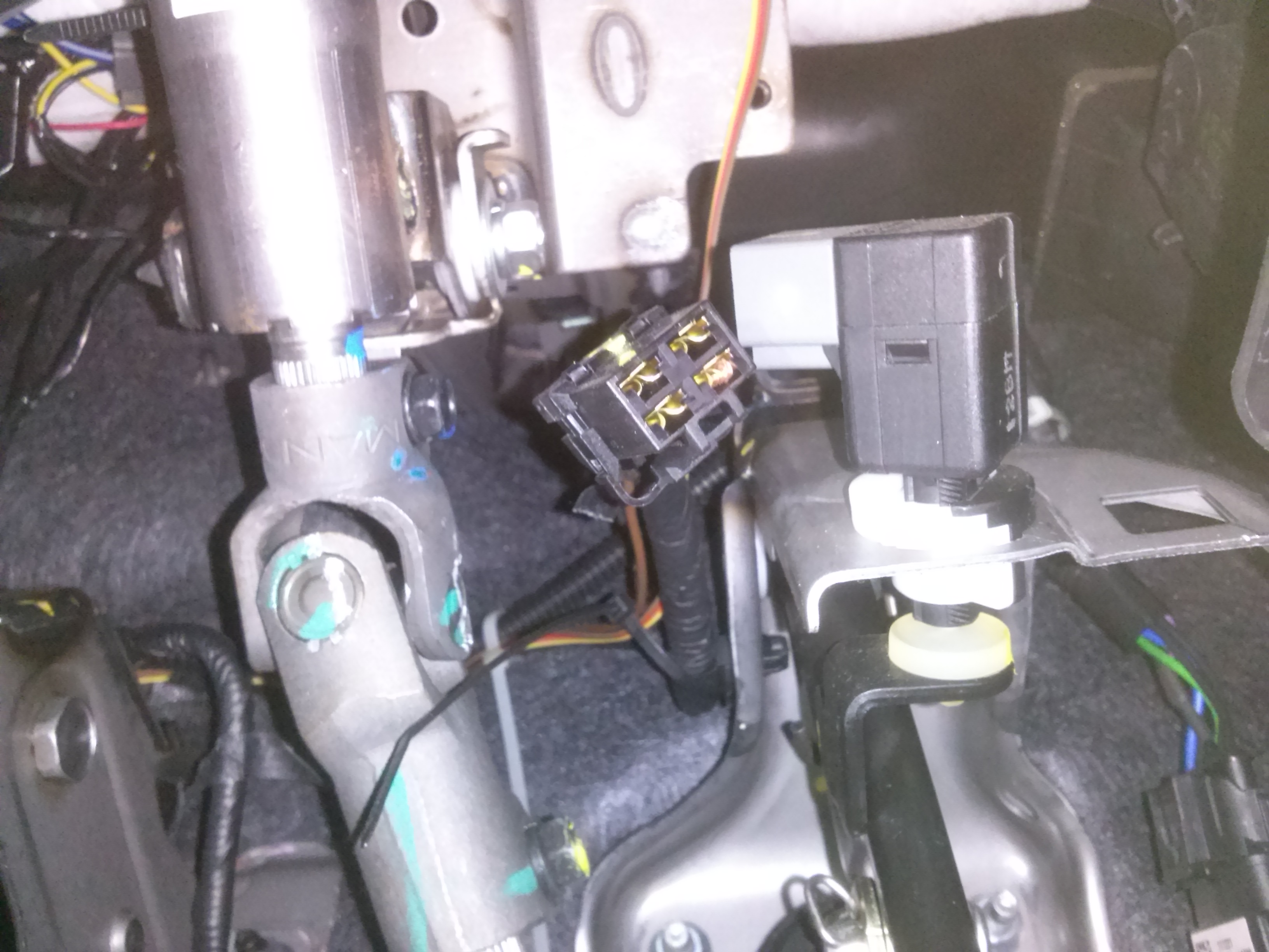 Лечение было следующее: между белым проводом в разъеме педали тормоза и проводом, идущим к БКК, было вставлено реле. В исходном состоянии оно разомкнуто, и на коричневый провод БКК в результате подается обрыв. Как написали из службы поддержки, «при обрыве этот провод сам подтягивается к земле внутри блока круиза, так что на неподключенном коричневом проводе должно быть 0.1-0.2 вольта». При нажатии на педаль тормоза на реле подается напряжение, оно замыкает контакты, и на коричневый провод идет напряжение нажатой педали тормоза. |