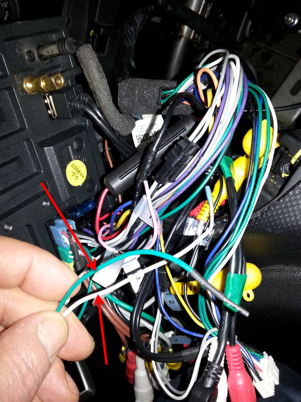 общей куче жгута проводов найти провод! кажется зелёного цвета(при включении задней передачи на нём появляется +12v)