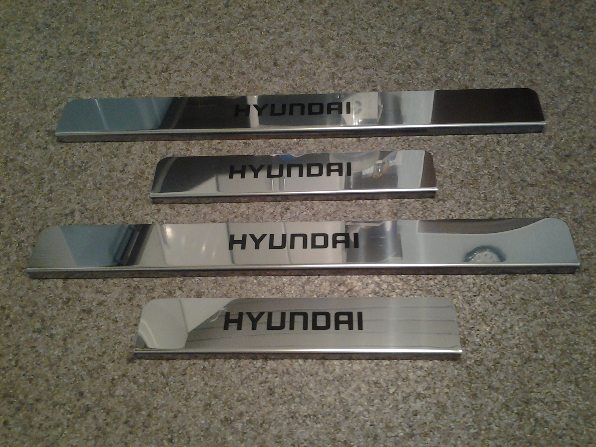 Предлагаю: НАКЛАДКИ на пороги с шелкографией HYUNDAI,материал нержавеющая сталь(М-430), комп.4 шт., крепление скотч. цена 450 рублей.