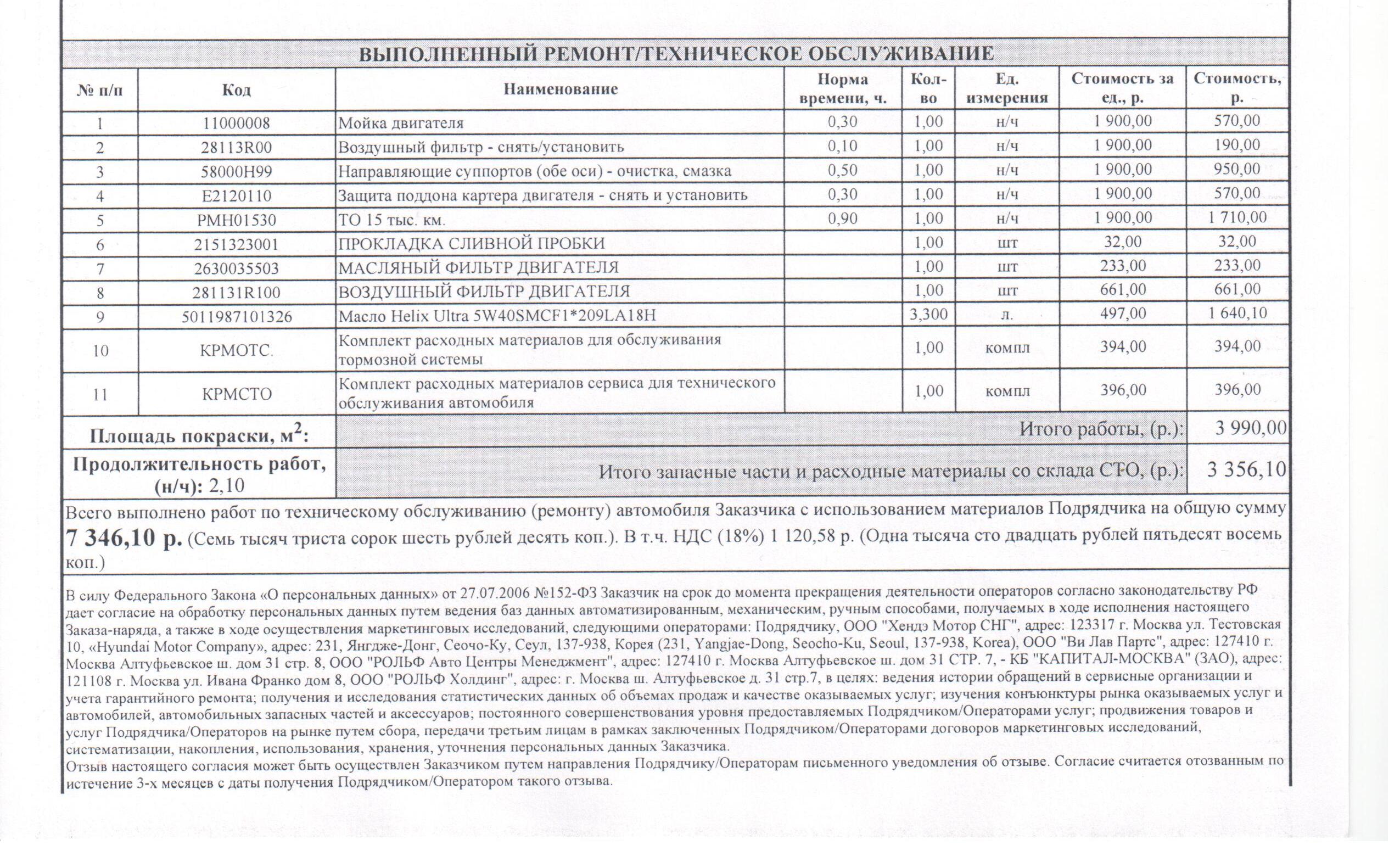 В итоге: 2680 руб за ТО, включая техническую мойку.
