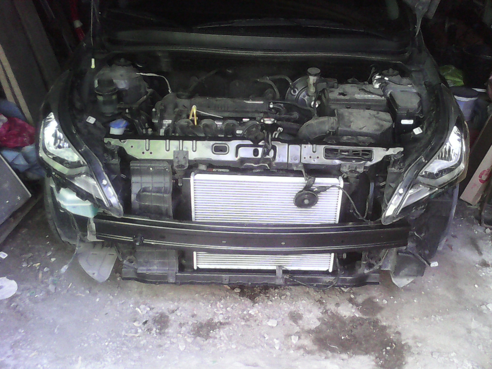 Ну что делать? Загнал в гараж, открыл капот, посмотрел вроде лонжероны целые, думаю попробую сам разобраться, начал разбирать!